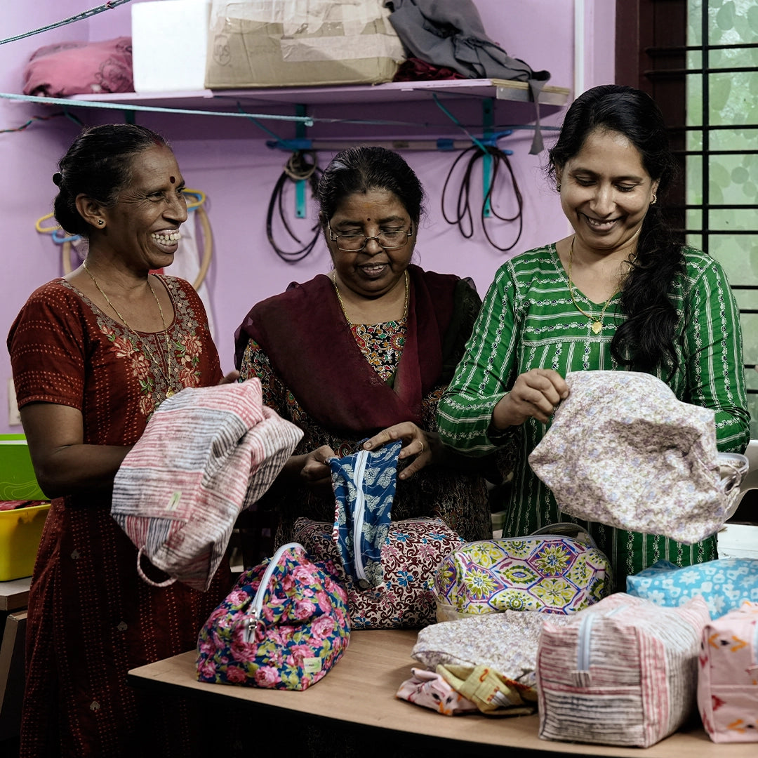 Each bag is handcrafted from 100% upcycled textiles by the incredible all-female team at Bluemadegreen in Kerala, India. From bold florals to geometric prints, every design is one-of-a-kind - a true celebration of creativity and conscious craftsmanship.